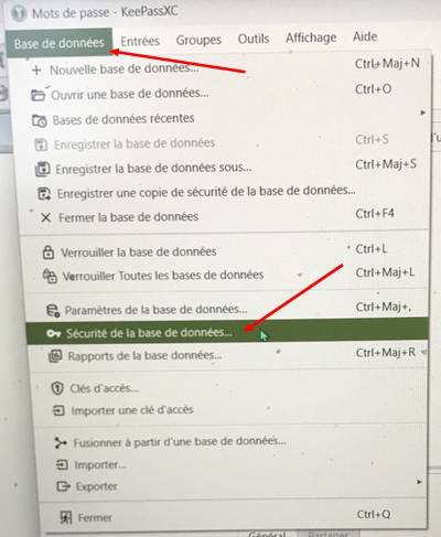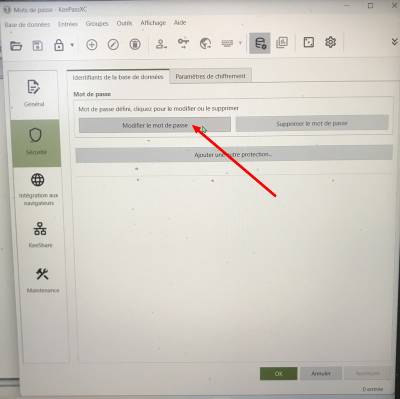 - Rechercher et récupérer le fichier “xxxx.kdbx”, ou créer une base de donnée.