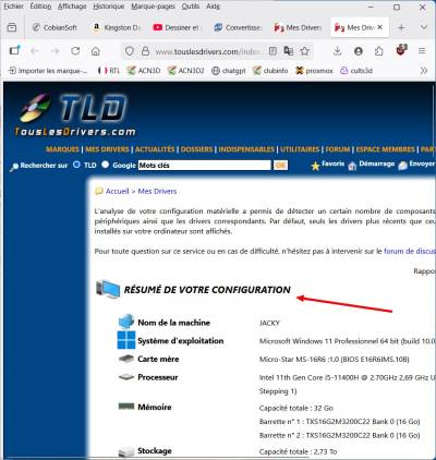 - Voici le résumer de votre configuration de votre ordinateur personnel.