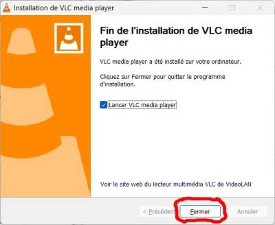- vous pouvez décocher Lancer VLC media player, puis fermer.